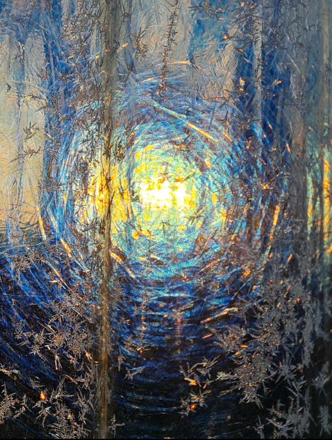 Bei meinen intuitiven Werken lerne ich viel über die Bewegungen der Schöpfungskraft, über das Werden und Vergehen, über Unvollkommenheit in der Vollkommenheit. Ich erlaube meiner Seele, so lange es geht im „Land des Nichtwissens“ zu lauschen und die Impulse umzusetzen. Ich lasse mich führen. Erst gegen Ende eines solchen Prozesses kann ich erkennen, was für eine Botschaft nach den letzten konkreten Feinarbeiten in mein Bewusstsein kommen durfte. So kann der Titel eines solchen Bildes dann auch nur ein Versuch sein, die Vielschichtigkeit und Tiefe meines lebendigen Prozesses in wenigen Buchstaben erfassbar zu machen.